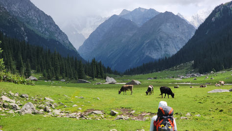 The Terskey Ala-Too range in northeastern Kyrgyzstan is a breathtaking landscape, featuring lush spruce forests, towering peaks, dramatic rock formations, and impressive glaciers. Among its most renowned treasures is Ala-Kul, the striking alpine lake, which stands as one of Kyrgyzstan’s most iconic landmarks. Rising to 5,216 meters, the Terskey Range offers a grandeur reminiscent of the Canadian Rockies or the European Alps—except, of course, it’s nestled in the heart of Kyrgyzstan.